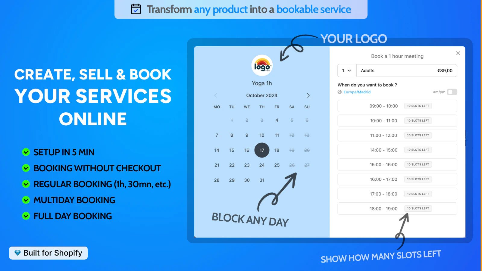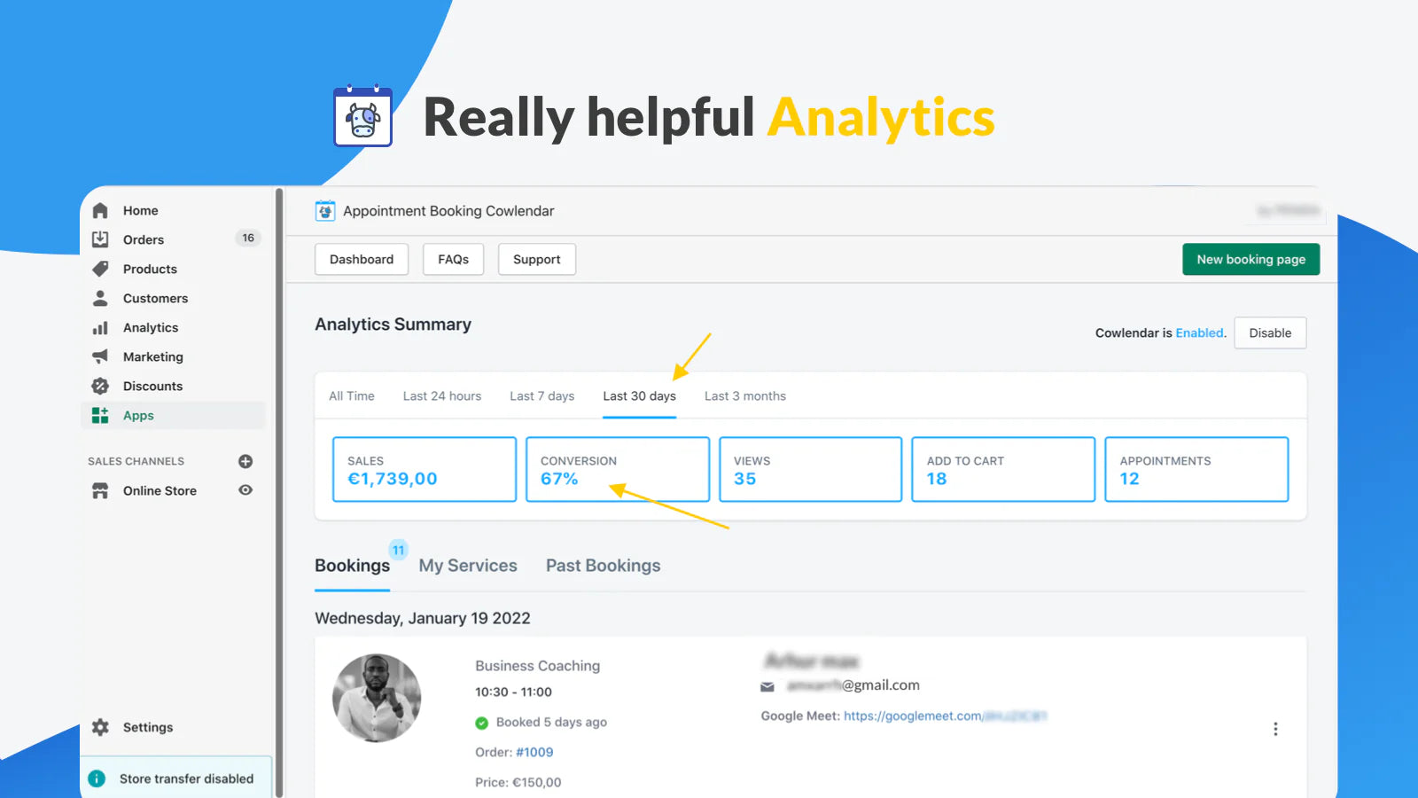 Cowlendar Booking seamlessly integrates powerful scheduling features into your Shopify store, allowing customers to book appointments, events, or rentals with ease. Replace the "Add to Cart" button with a "Book Now" option and transform any product into a bookable service in just 3 minutes—no technical skills required! Sync with Google Calendar to keep track of bookings, send reminders via SMS and email, and enjoy a user-friendly appointment view. With support for multiple users, Cowlendar is perfect for businesses like restaurants, doctors, rentals, and salons. Whether in-person or virtual through Zoom or Google Meet, Cowlendar streamlines booking management for your store.